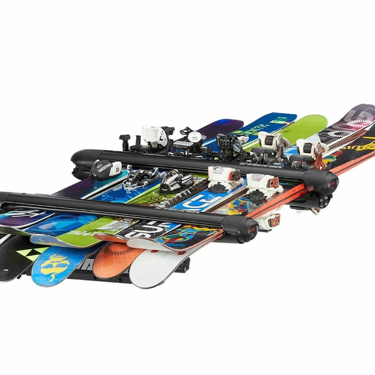 - Wide enough for five pairs of pow skis or four boards